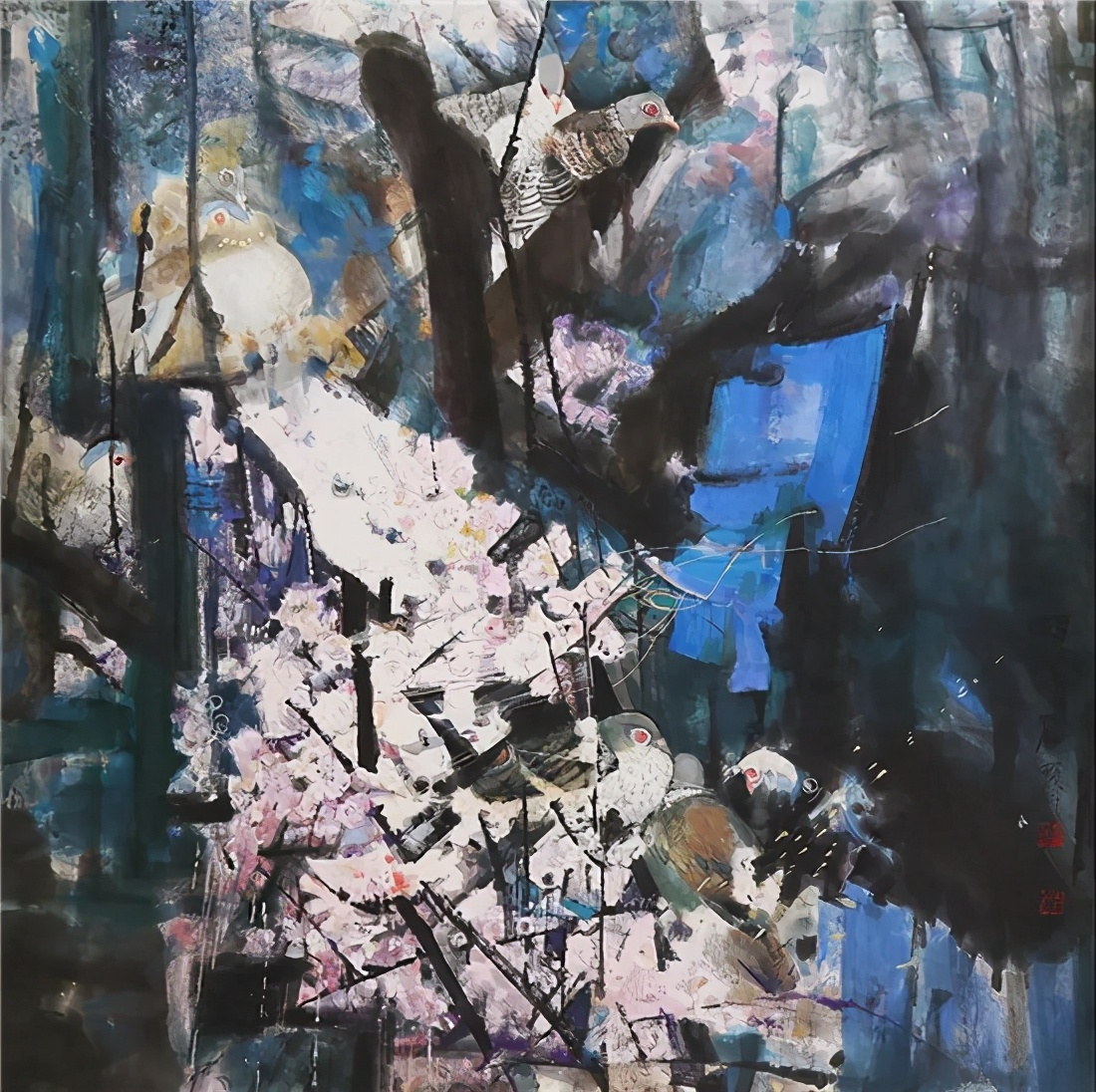 展品:石齊《櫻花》124cm x 124cm紙本設(shè)色2000年