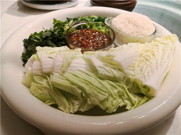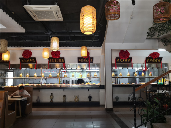 尤其扎眼的,正對大門的明廚亮灶上的幾塊牌匾,一下子就勾起人的食欲:老式熏豬手、手工燒老雞、烏蘇里江鰉魚、興凱湖大白魚、查干湖胖頭魚、火夫灶羊腿。這些都是地道的東北味?。?jù)介紹,老板湯長明是黑龍江“龍菜”系傳承領(lǐng)軍人物,祖孫四代傳承東北菜廚藝,現(xiàn)在關(guān)東大院餐飲集團(tuán)董事長。當(dāng)然,許多大家耳熟能詳?shù)拇蟊姴艘矐?yīng)有盡有,如:殺豬菜、小雞燉蘑菇、得莫利燉魚、大鵝燉寬粉、黑皮肘子、酸菜粉、地三鮮、東北鹵水點(diǎn)豆腐、金湯遼參、黃魚燒土豆、紅燒肉黃金勾......看得人口水直冒。加之,整個(gè)門店的布局也十分特別,一樓明廚亮灶之外,主要是大堂散座,周邊還有不少的書籍、酒架;二樓主要是包間,簡潔明亮。可以說,在此可以感受到一股濃濃的關(guān)東風(fēng)情。