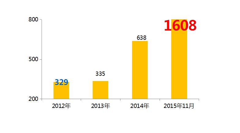 隊伍發(fā)展:2012-2015年,新華深分組織不斷擴大。截至2015年11月,個險人力達1608人,較2012年增長近5倍。