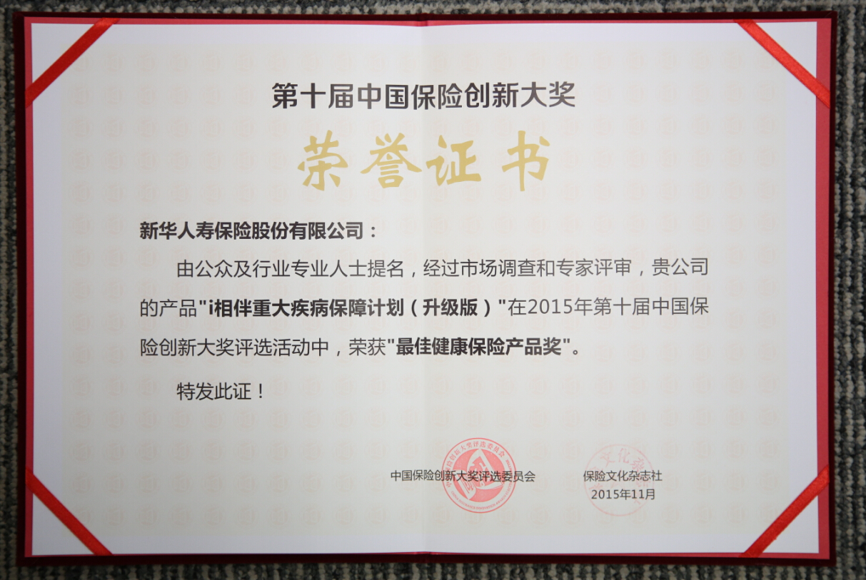 2015年最佳健康保險產(chǎn)品獎