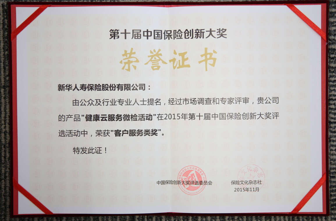 2015中國保險(xiǎn)創(chuàng)新大獎(jiǎng)--客戶服務(wù)類獎(jiǎng)