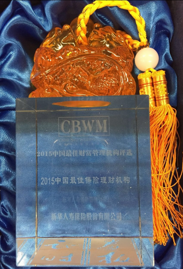 2015年6月,2015中國財富管理跨界融合高峰論壇暨2015中國最佳財富管理機構(gòu)評選頒獎”在深圳舉行。憑借穩(wěn)健的盈利能力及優(yōu)秀的風險管控能力,新華保險斬獲2015“中國最佳保險理財機構(gòu)”獎,蟬聯(lián)該榮譽獎項。
