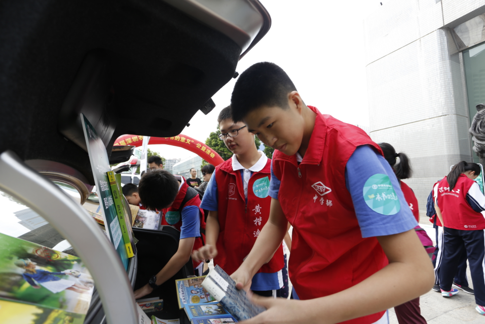 本次活動(dòng)將車尾箱作為展臺(tái),活動(dòng)參與者按照1:1進(jìn)行舊書交換,或到深圳農(nóng)行現(xiàn)場設(shè)置的捐書點(diǎn)捐獻(xiàn)舊書,每捐出五本舊書,可獲得由農(nóng)行送出的10元書劵?;顒?dòng)吸引來自錦田小學(xué)、深圳實(shí)驗(yàn)學(xué)校中學(xué)部及深圳新聞網(wǎng)網(wǎng)友共40多個(gè)家庭參與,僅兩個(gè)小時(shí)便交出漂亮的“成績單”,現(xiàn)場交換圖書900多本,捐贈(zèng)愛心書籍1000余本。