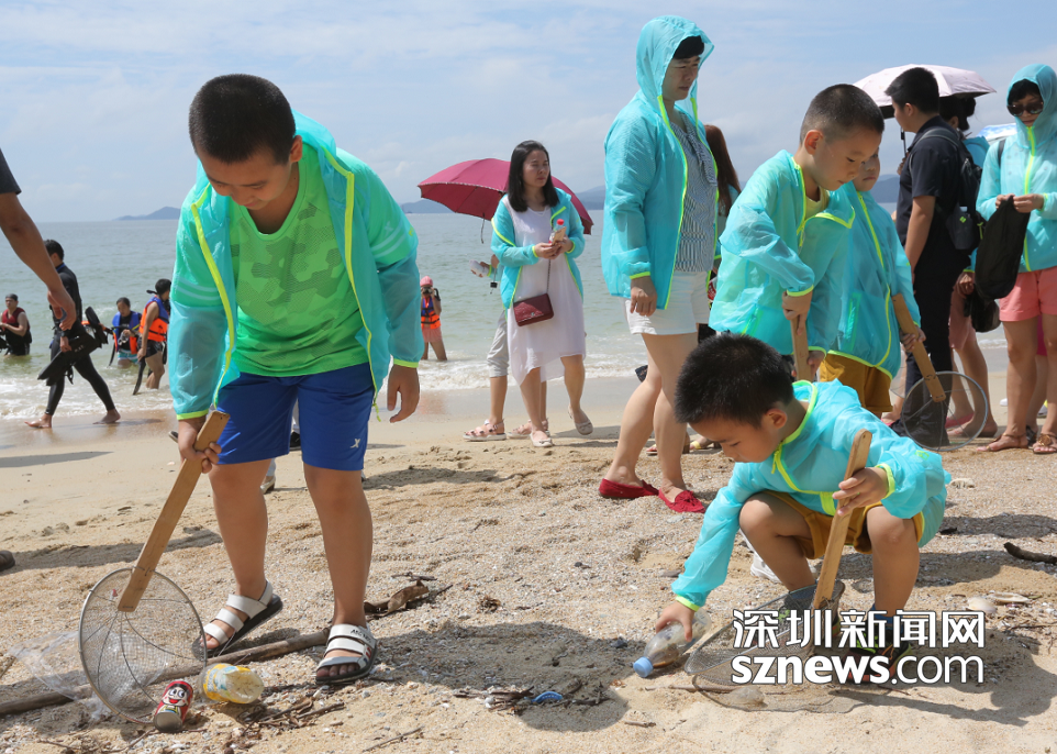 看到沙灘上的各種垃圾,孩子們用工具、手,快速地清理,還海岸線耀眼的風景。