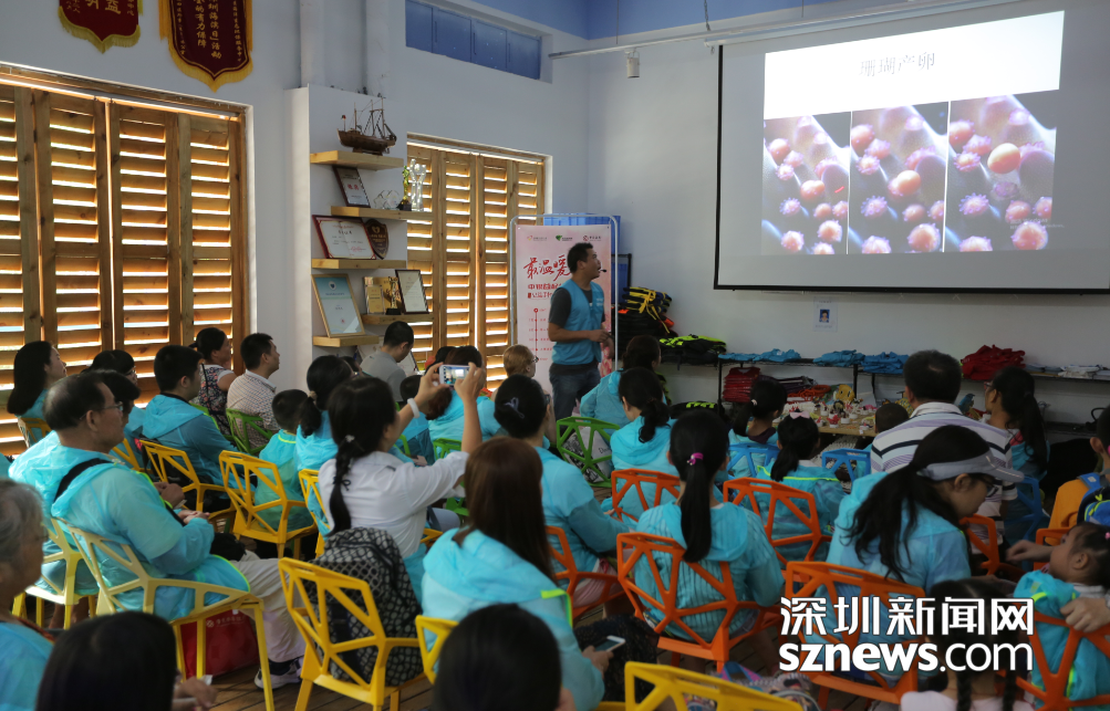 珊瑚蟲義工隊(duì)隊(duì)長鯊哥為來到海邊學(xué)習(xí)海洋環(huán)保知識(shí)的孩子們上課。