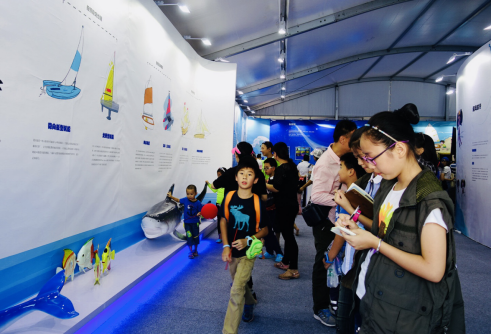 我找了一位正在觀看帆船知識,看起來比較面善的阿姨,鼓足勇氣走上去打了個招呼,并向她說明了我的來意,問是否可以打擾她一下,采訪她幾個問題,阿姨欣然答應。