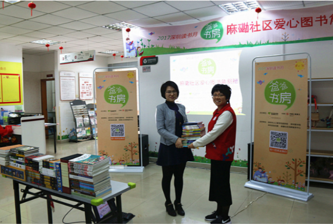 據(jù)介紹,為建設(shè)“學(xué)習(xí)型社區(qū)”,麻磡社區(qū)已經(jīng)建立了“四點(diǎn)半學(xué)校閱讀區(qū)”閱讀室,但由于社區(qū)原有圖書陳舊,急需一批新書豐富圖書資源來滿足社區(qū)孩子們的閱讀需求。了解到這一信息后,“爸爸書房”聯(lián)合中國工商銀行深圳分行、深圳市閱讀聯(lián)合會采購了一批全新的兒童讀物送到麻磡社區(qū),建立“爸爸書房愛心圖書角”,助力社區(qū)圖書室建設(shè)。
