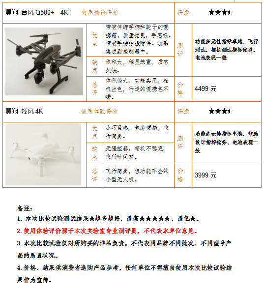 御Mavic Pro”和“精靈3標準版Phantom 3 Standard”,充電時間較短,續(xù)航時間較長,表現(xiàn)較好,獲評3.5分。