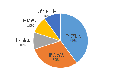 (二)單項指標優(yōu)勢明顯。三款產(chǎn)品的飛行測試、相機測試、功能多樣性三個維度的測試數(shù)據(jù)均優(yōu)于其他品牌產(chǎn)品。