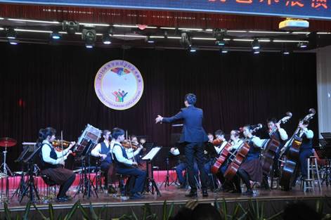 王翔云老師在龍華區(qū)學(xué)校藝術(shù)展演中指揮弦樂(lè)團(tuán)