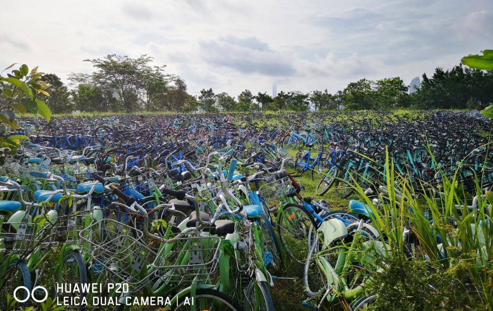 安托山公園內(nèi)堆放的共享單車中,有較大部分來自已停運破產(chǎn)的共享單車公司。有網(wǎng)友對此感到疑惑:“這樣的共享單車該由誰來負(fù)責(zé)清理?”