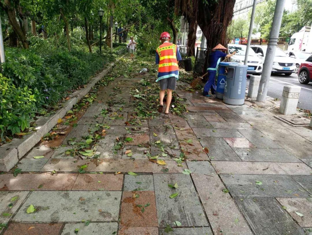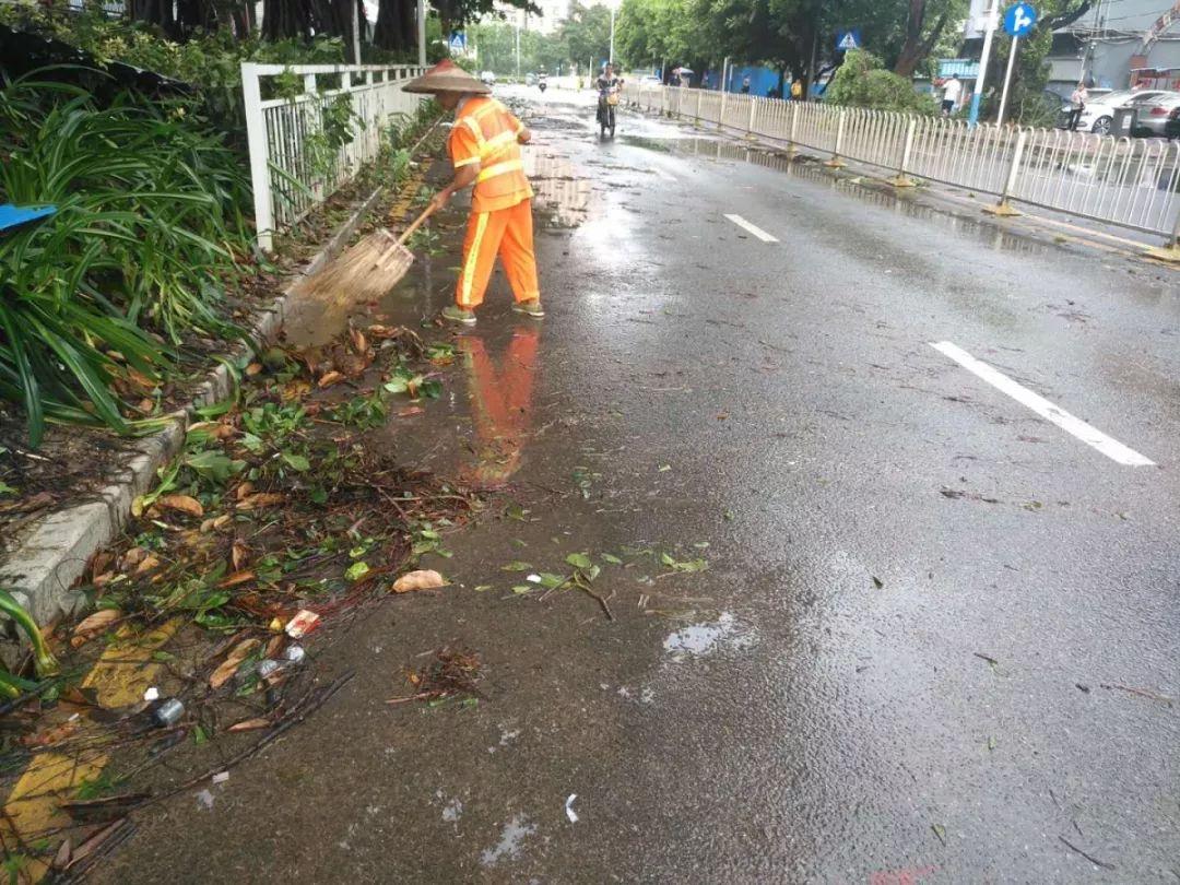 據(jù)統(tǒng)計,截至17日下午6時,福永街道共出動搶險人員770人,出動車輛45臺,清除路面障礙130余處,疏通道路邊溝橋涵70余處,修復(fù)交通設(shè)施45處,連夜貫通、清洗主干道路33條,扶正樹木283棵,清理枝葉約215.5噸、垃圾約198.5噸,修復(fù)垃圾桶630個、果皮箱330組,修復(fù)路燈15桿。