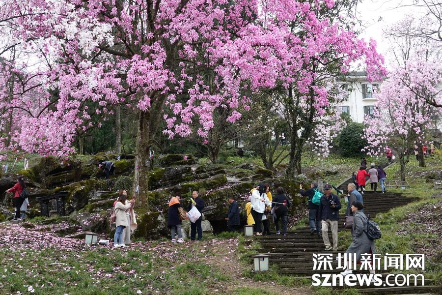 雨霧濛濛之中觀賞盛開的辛夷花,宛若置身仙境......李仁奇 攝