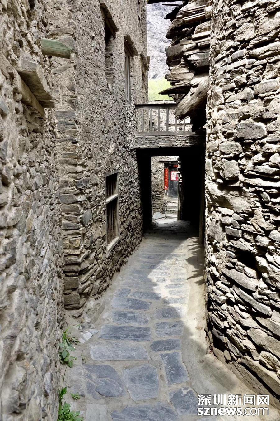 寨子是一處石碉與民居合二為一的建筑群,片石與黃泥砌成的堅(jiān)固經(jīng)歷了無(wú)數(shù)的地震后仍完好無(wú)損。墻體和墻體之間的巷道深幽而神秘,因一些巷道上搭建了房屋,于是有了無(wú)數(shù)暗道,走入其中就像步入了歷史的迷宮。李仁奇 攝