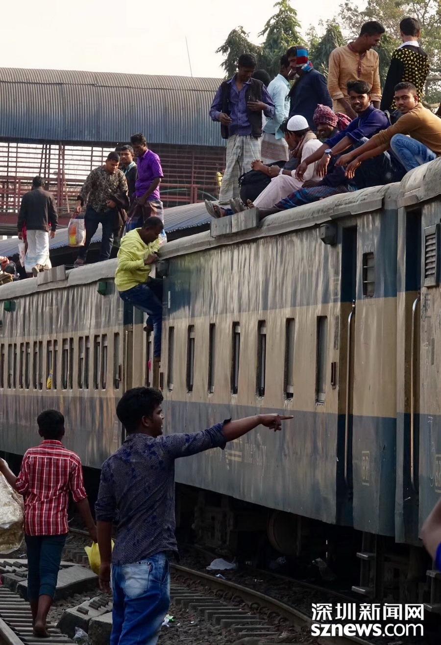 孟加拉的“瘋狂火車” 民眾為省錢蹲在兩節(jié)車廂的掛鉤處