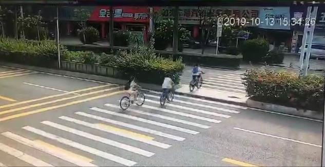 深圳一學(xué)生騎車通過斑馬線被撞。圖為監(jiān)控視頻所拍攝畫面。