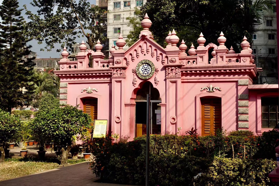 距孟加拉恒河渡口不遠的地方有一座粉紅色宮殿式的豪華建筑。那是1872年一位名叫阿赫桑曼濟勒的地主在法國人留下的倉房基礎(chǔ)上改建的私邸,后來曾在一次龍卷風襲擊時受創(chuàng)。李仁奇 攝