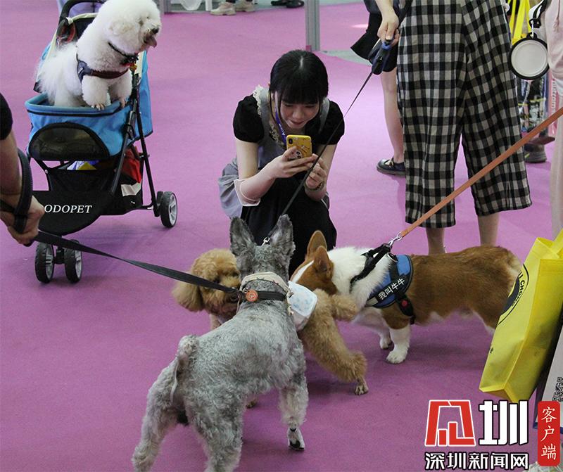 市民在現(xiàn)場給參展的寵物狗們拍照。