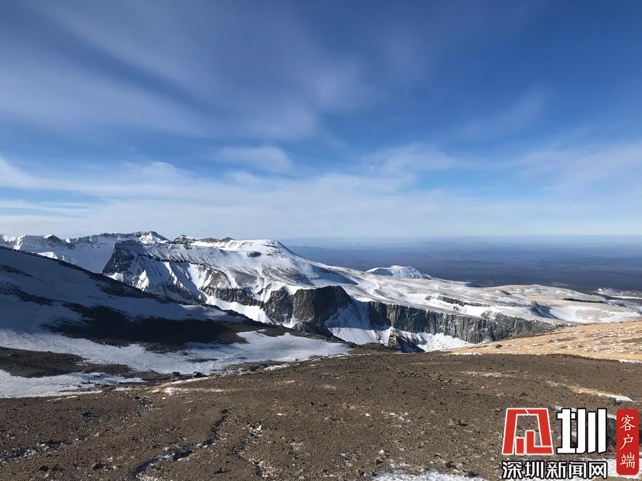 在天池上,溫度可達(dá)-30度,在山頂上面刮風(fēng)的時候,手機(jī)等電子設(shè)備容易被凍關(guān)機(jī)。站在山頂上,眺望遠(yuǎn)處的巍巍雄山,感覺到開闊之意。主峰長白山多白色浮石與積雪而得名,素有“千年積雪萬年松,直上人間第一峰”的美譽。