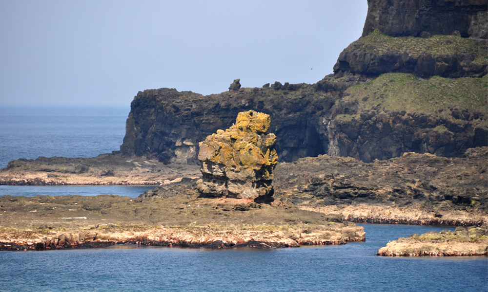 組成巨人堤道的典型石柱寬約0.45m,有的石柱高出海面6m以上,最高者達(dá)12m左右,還有大量淹沒于水下或與海面持平的石柱。李仁奇 攝