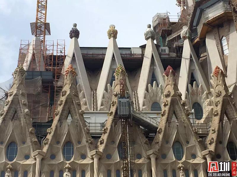 高迪73歲去世時,教堂僅完工了不到四分之一。圣家堂的建設進展緩慢,僅靠個人捐贈和門票收入維系,中間又受西班牙內戰(zhàn)干擾,在二十世紀五十年代建造時斷時續(xù)。圖為圣家族大教堂。李仁奇 攝