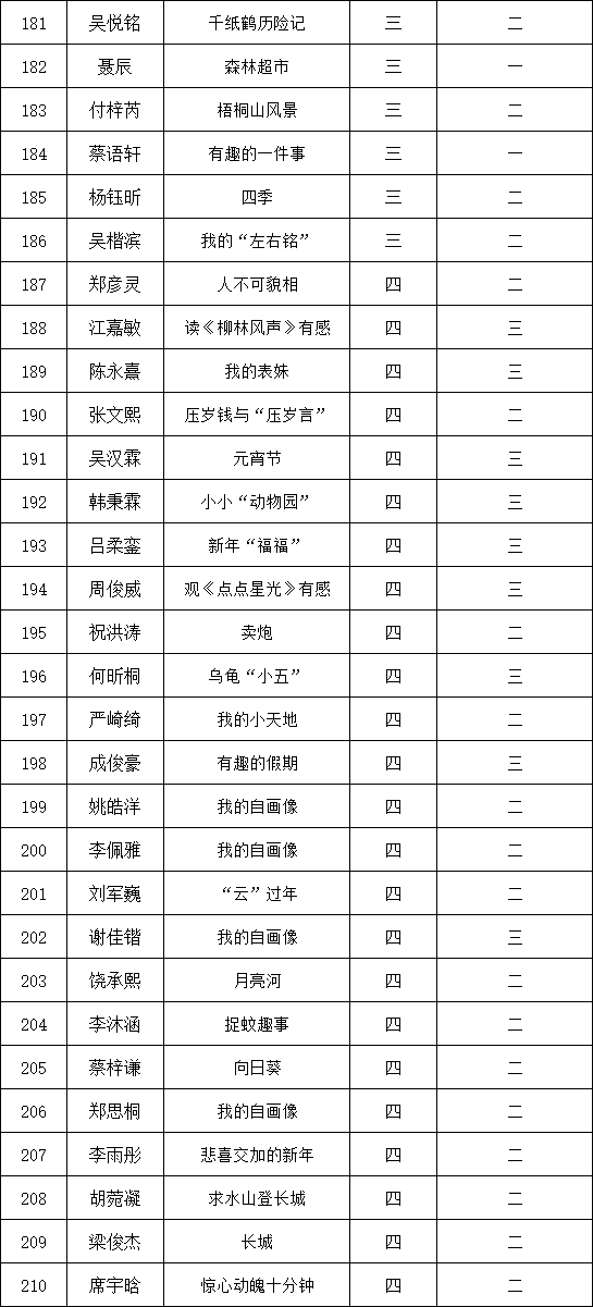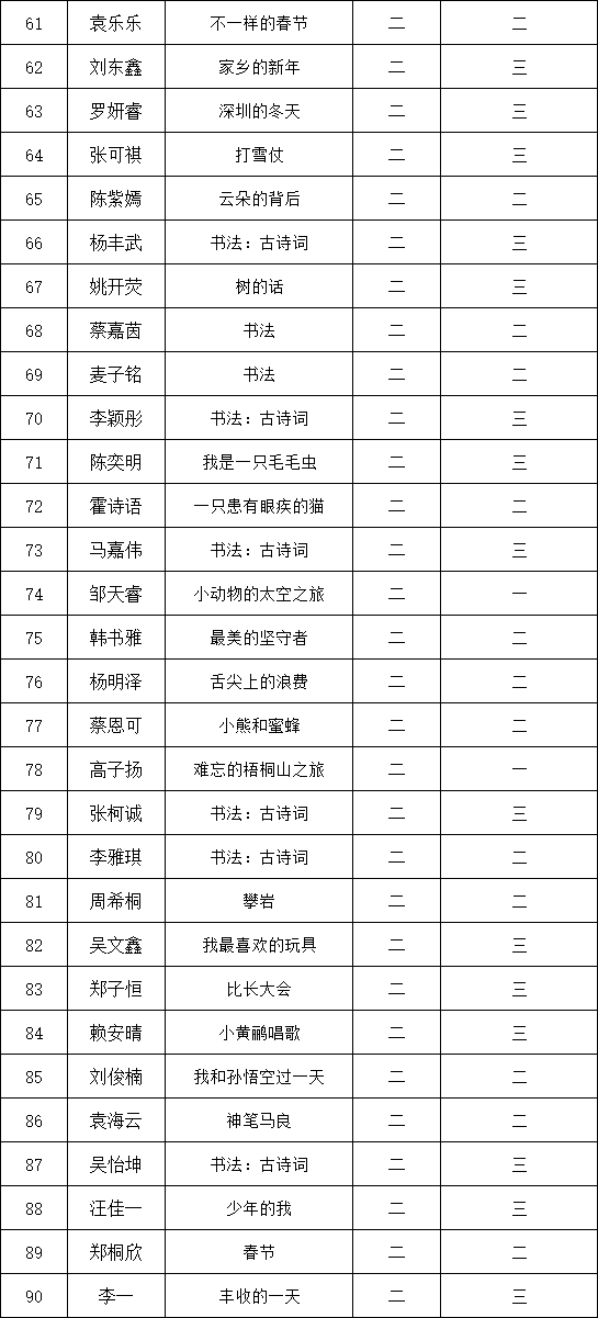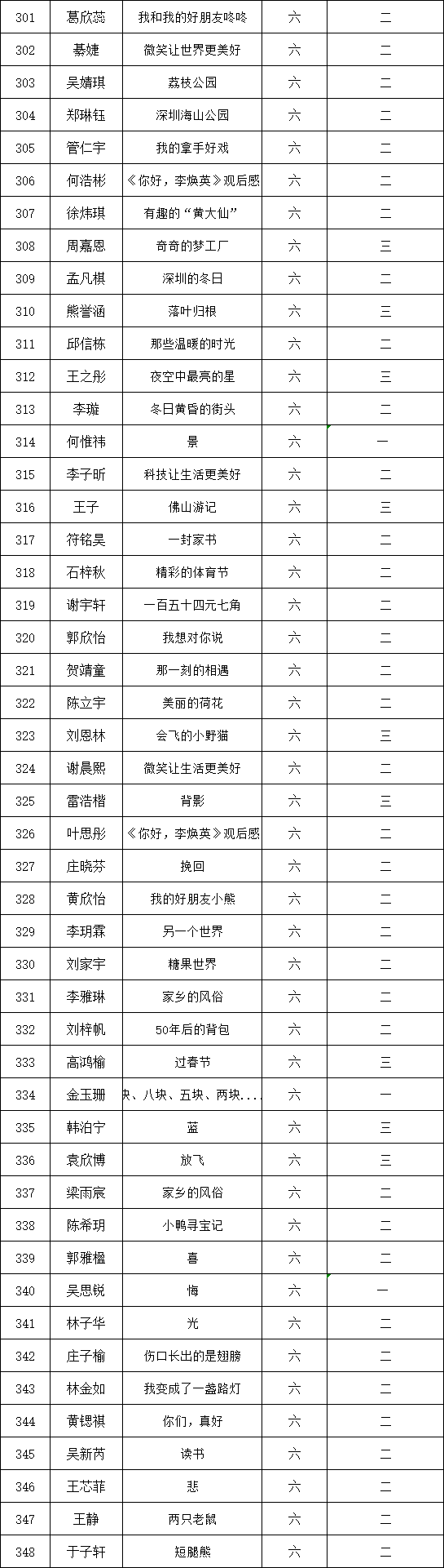 自2021年1月,活動(dòng)征稿啟動(dòng)以來(lái),獲得了深圳市廣大中小學(xué)生、教師、文學(xué)愛好者的熱烈響應(yīng)積極參與,吸引了深圳百余所學(xué)校的上萬(wàn)人關(guān)注報(bào)名。現(xiàn)公布深圳市濱河小學(xué)校園專場(chǎng)晉級(jí)復(fù)賽名單如下: