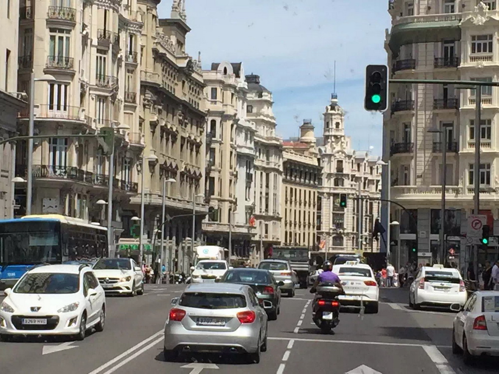 馬德里不像巴塞羅那那樣擁擠熱鬧,街道寬闊、建筑漂亮、市容整潔、綠樹成蔭。街道馬路上行人車輛都較少。李仁奇 攝