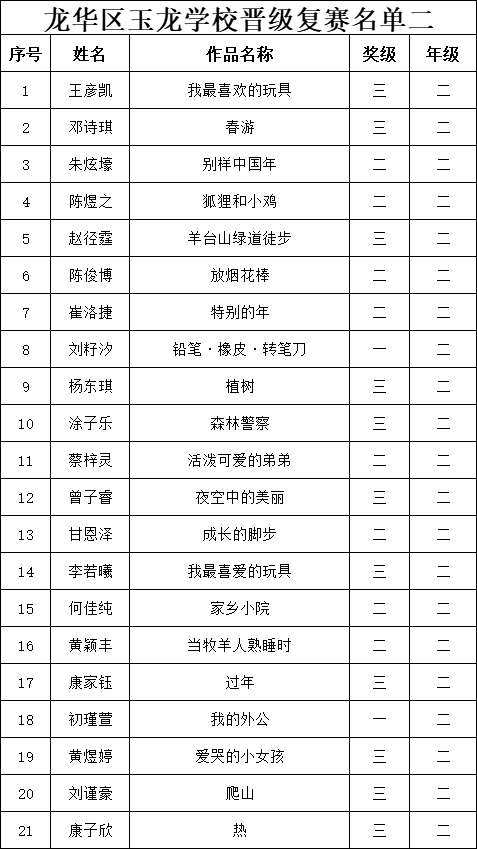 自2021年1月,活動(dòng)征稿啟動(dòng)以來(lái),獲得了深圳市廣大中小學(xué)生、教師、文學(xué)愛(ài)好者的熱烈響應(yīng)積極參與,吸引了深圳百余所學(xué)校的上萬(wàn)人關(guān)注報(bào)名?,F(xiàn)公布龍華區(qū)玉龍學(xué)校專(zhuān)場(chǎng)第二批晉級(jí)復(fù)賽名單如下: