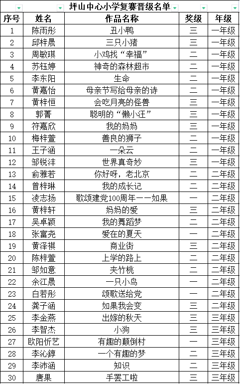自2021年1月,活動(dòng)征稿啟動(dòng)以來,獲得了深圳市廣大中小學(xué)生、教師、文學(xué)愛好者的熱烈響應(yīng)積極參與,吸引了深圳百余所學(xué)校的上萬人關(guān)注報(bào)名?,F(xiàn)公布坪山區(qū)坪山中心小學(xué)晉級復(fù)賽名單如下: