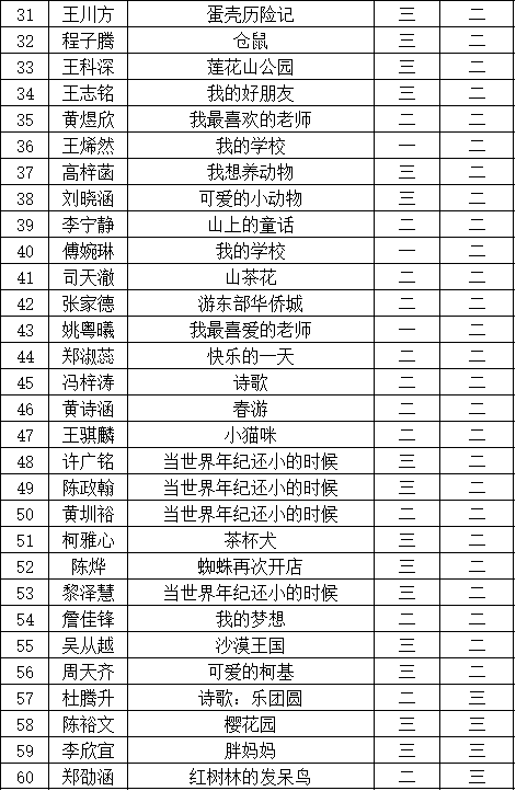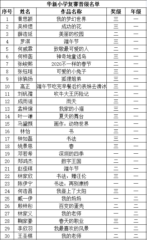 自2021年1月,活動征稿啟動以來,獲得了深圳市廣大中小學生、教師、文學愛好者的熱烈響應積極參與,吸引了深圳百余所學校的上萬人關注報名?,F(xiàn)公布福田區(qū)華新小學晉級復賽名單如下: