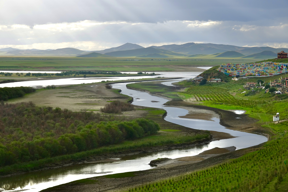 蜿蜒曲折的黃河及其支流白河將寬廣平坦的若爾蓋草原核心地帶分割成無(wú)數(shù)河州、小島,形成遼闊的高原濕地、候鳥(niǎo)天堂,被中外科學(xué)家譽(yù)為“宇宙中的莊嚴(yán)幻影”。李仁奇 攝