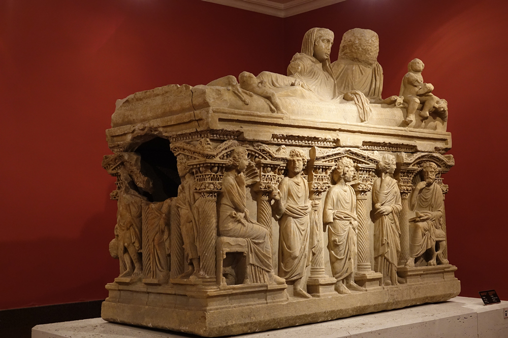 赫拉克勒斯石棺,它的側(cè)立面描繪赫拉克勒斯斬殺九頭蛇、與獅子搏斗、偷盜金蘋果等12項苦力后升為神的傳奇故事,浮雕保存完整、栩栩如生,展現(xiàn)了古羅馬精湛的雕塑工藝。李仁奇 攝