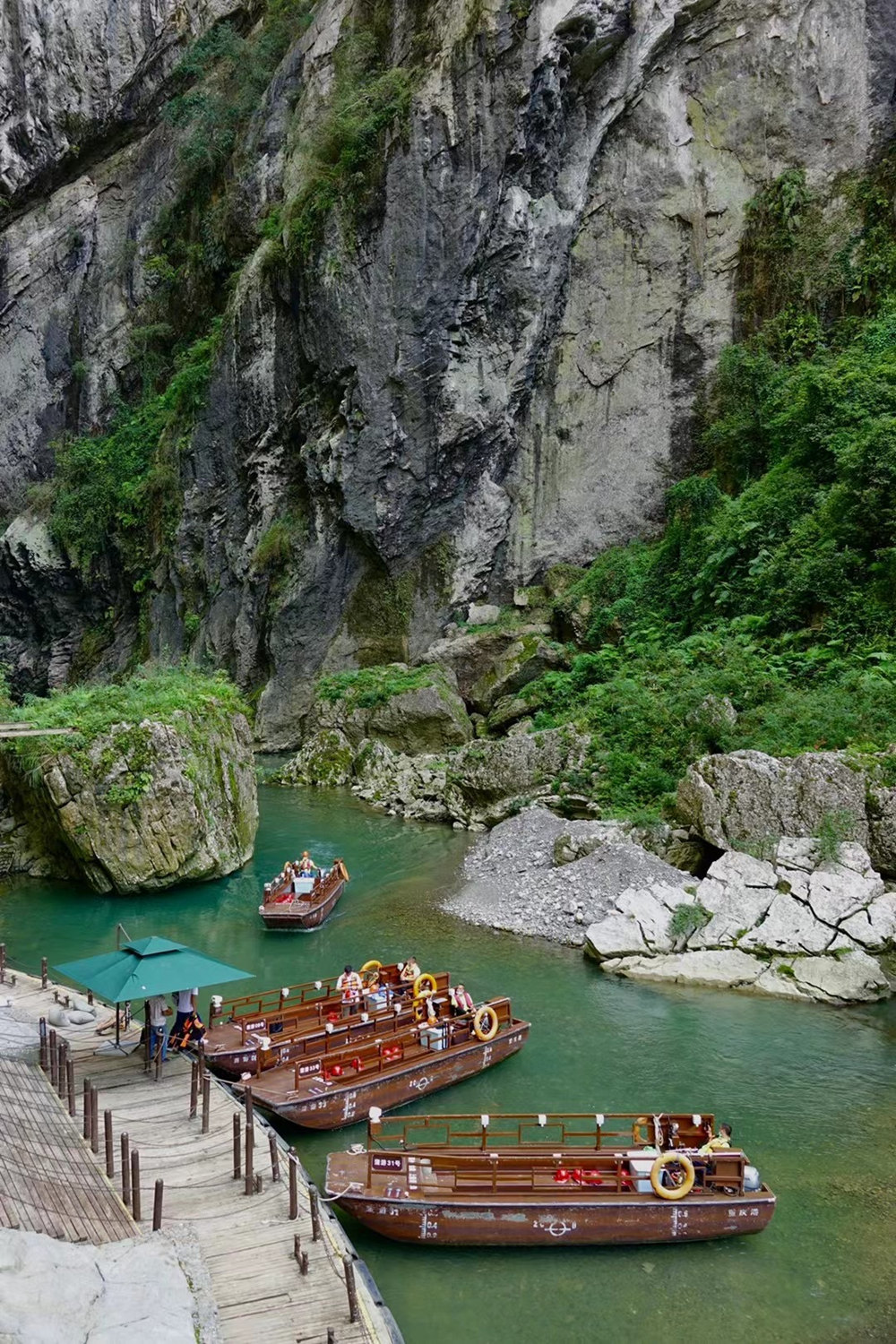 河邊碼頭,幾艘游船躺在水面上,等待著游客的到來。李仁奇 攝