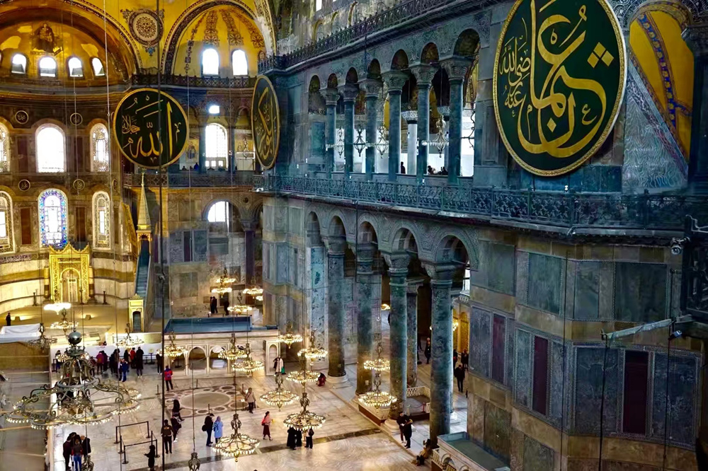 圣索菲亞大教堂內(nèi)部有140根巨大石柱,由于是從不同地方運來的,因此石料色彩不一,有些是紫色,有些又是綠色。李仁奇 攝
