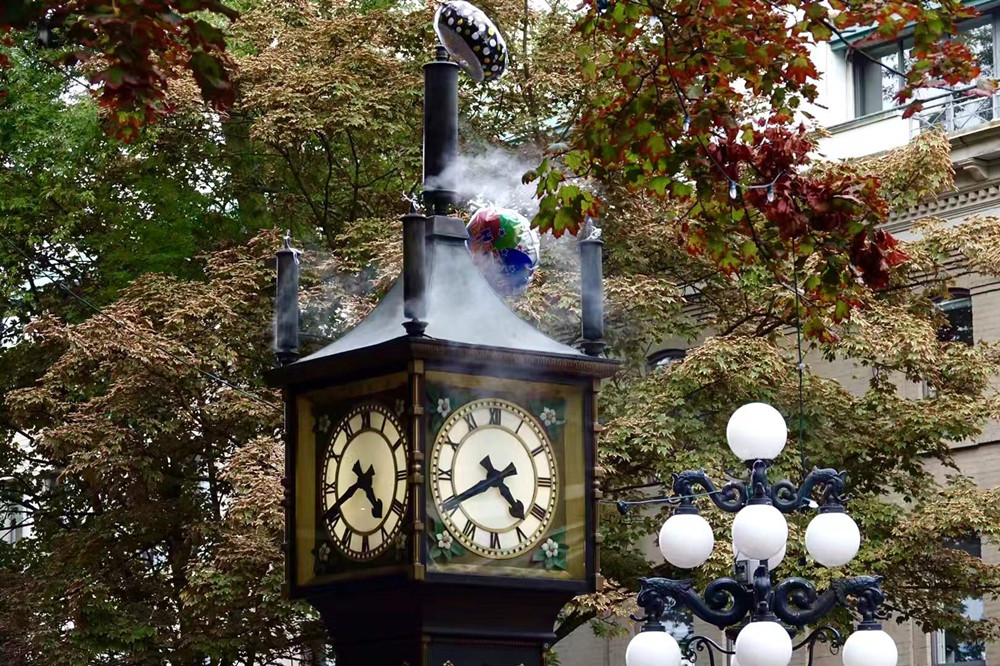 蒸汽鐘,顧名思義是用蒸汽作動(dòng)力的鐘,鐘盤的頂端有一大四小5個(gè)汽笛,每隔15分鐘,汽笛都會(huì)嗚叫,并噴出蒸汽。每逢整點(diǎn),則發(fā)出悅耳的音樂聲。李仁奇 攝