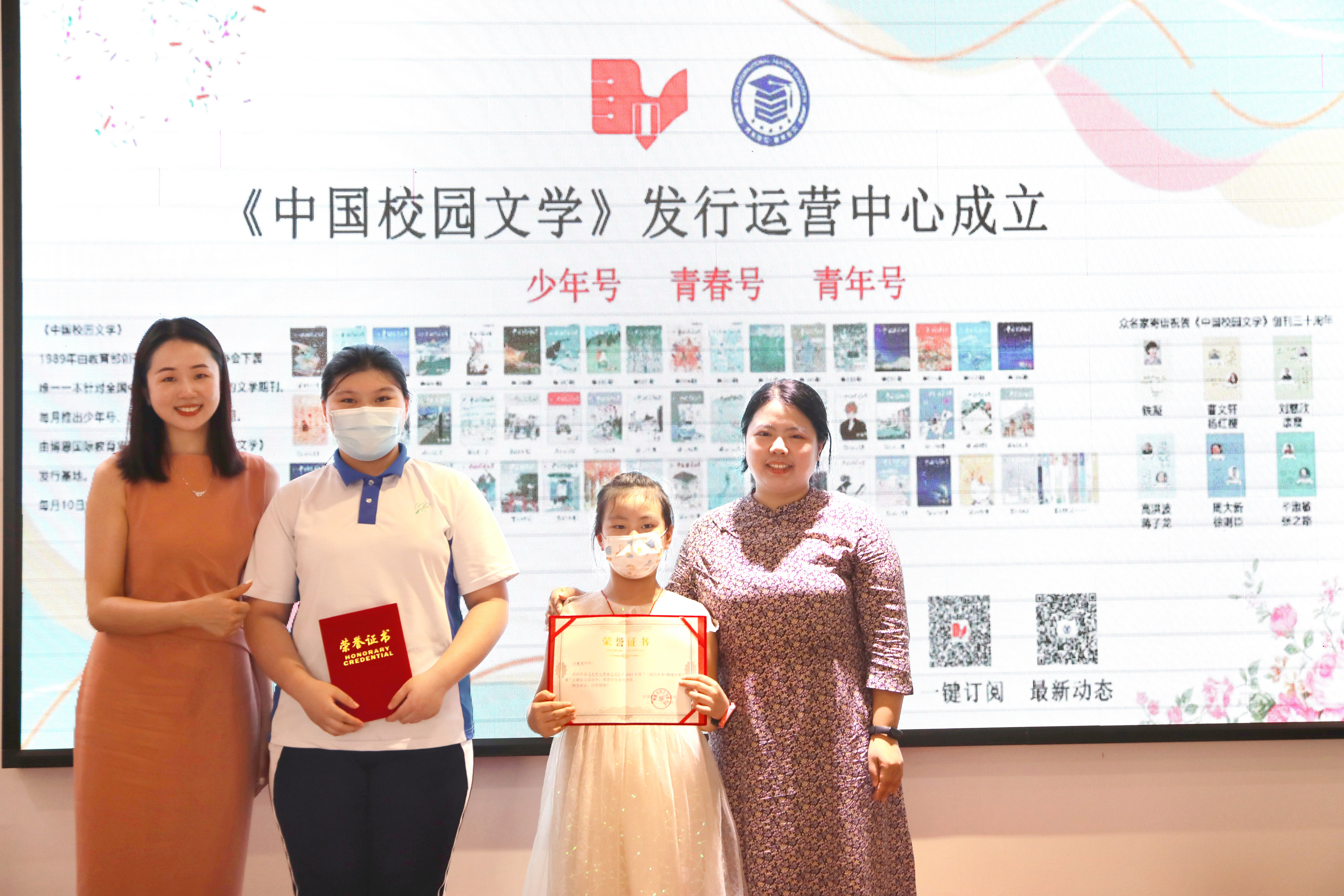 劉翔宇、冉蘭為獲獎(jiǎng)學(xué)生代表頒獎(jiǎng)并合影