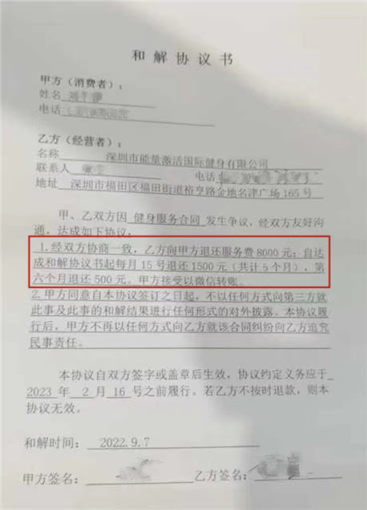 本人在該商家處購買健身會員卡服務(wù),因健身服務(wù)合同內(nèi)容與商家產(chǎn)生爭執(zhí),經(jīng)協(xié)商,商家簽訂了退款協(xié)議,同意退還服務(wù)費(fèi)8000元,分6期退還。在退還第一期費(fèi)用1500元后,商家以經(jīng)營困難為由拒不履行退款協(xié)議。