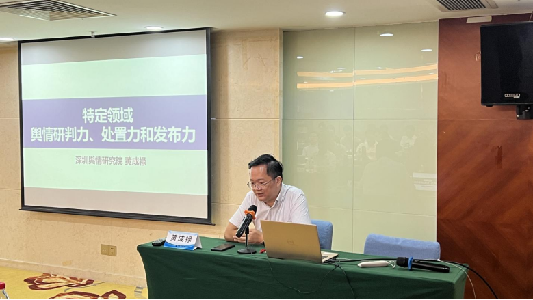 深圳新聞網(wǎng)2024年8月2日訊(記者 蔡雪曼 實(shí)習(xí)生 謝臻兒為提高全市特定領(lǐng)域人員輿情工作素養(yǎng),深化輿情意識(shí)和認(rèn)知,助力營(yíng)造良好的輿論氛圍,7月25日下午,某市直單位舉辦專題培訓(xùn)班,邀請(qǐng)深圳輿情研究院執(zhí)行院長(zhǎng)黃成祿擔(dān)任授課老師,圍繞《特定領(lǐng)域輿情研判力、處置力和發(fā)布力》主題展開授課。