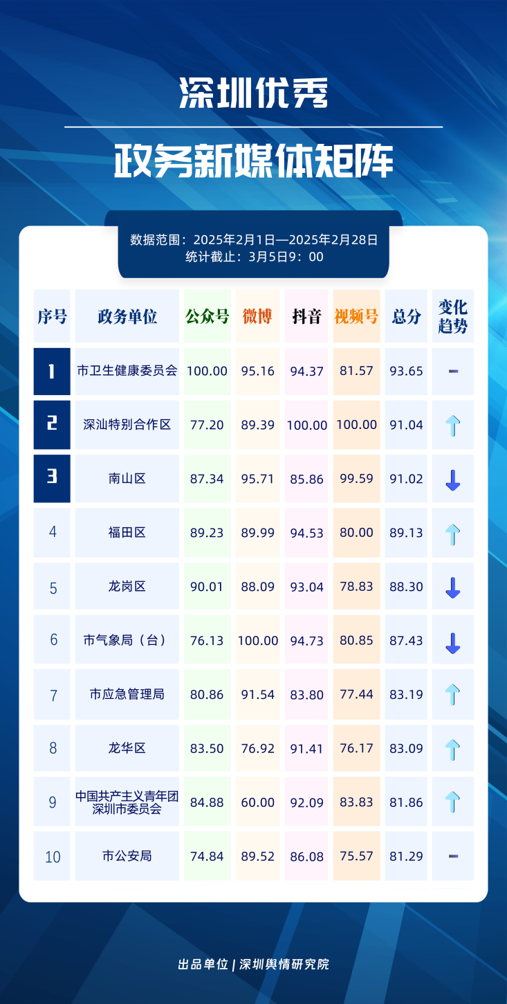 “深圳優(yōu)秀政務(wù)新媒體矩陣”揭曉,2月榜單這些新調(diào)整值得關(guān)注!