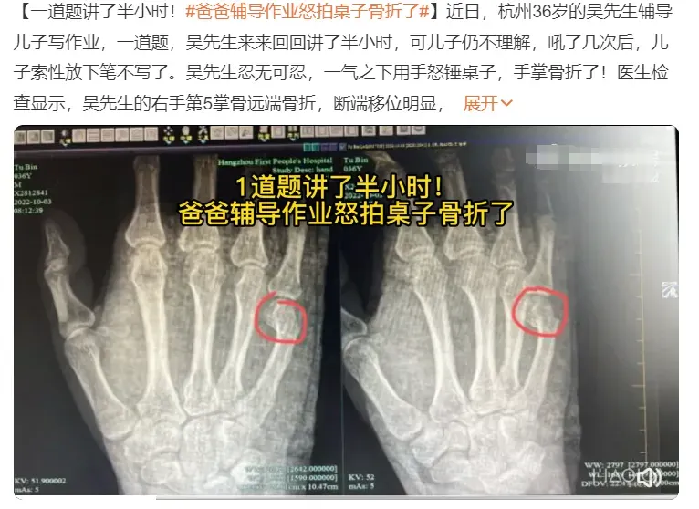 爸爸輔導(dǎo)作業(yè)怒拍桌子骨折了