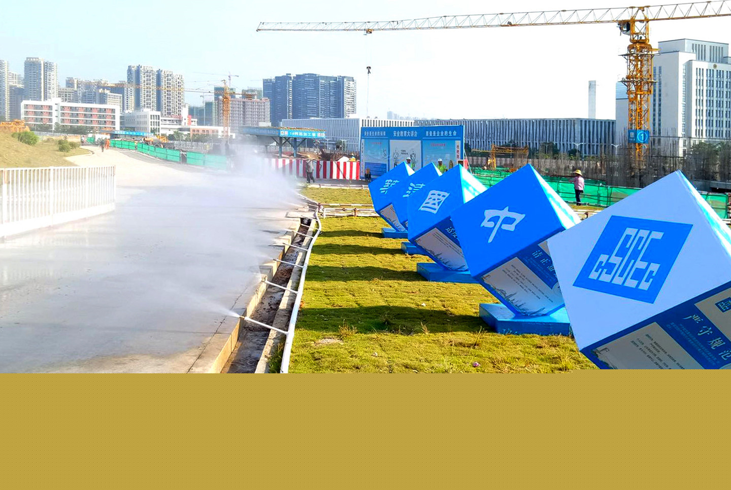 日前,在觀瀾街道地鐵四號線4302標(biāo)段施工工地上空,四套高聳的塔吊噴霧系統(tǒng)格外引人注目。