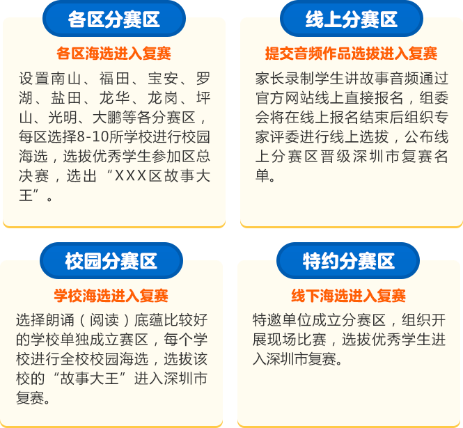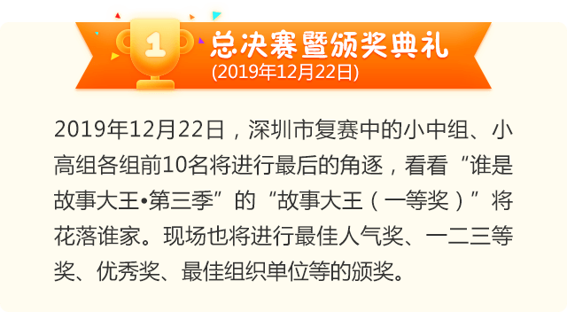 讓閱讀成為動(dòng)人的風(fēng)景,讓故事的魅力感動(dòng)深圳。為助力建設(shè)良好的青少年閱讀環(huán)境,激發(fā)學(xué)生閱讀興趣,倡導(dǎo)親子閱讀,共建和諧家庭關(guān)系。2020年,第二十一屆深圳讀書月主題活動(dòng)“誰是故事大王·第四季”在共青團(tuán)深圳市委員會(huì)、深圳市關(guān)愛行動(dòng)組委會(huì)辦公室的指導(dǎo)下再出發(fā)。更長的活動(dòng)周期,更豐富的參與形式,更專業(yè)的賽制,“誰是故事大王·第四季”等你來解鎖與挑戰(zhàn)!